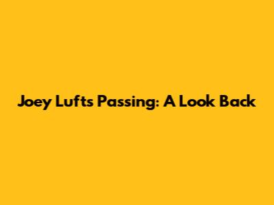 Joey Luft's Passing: A Look Back
